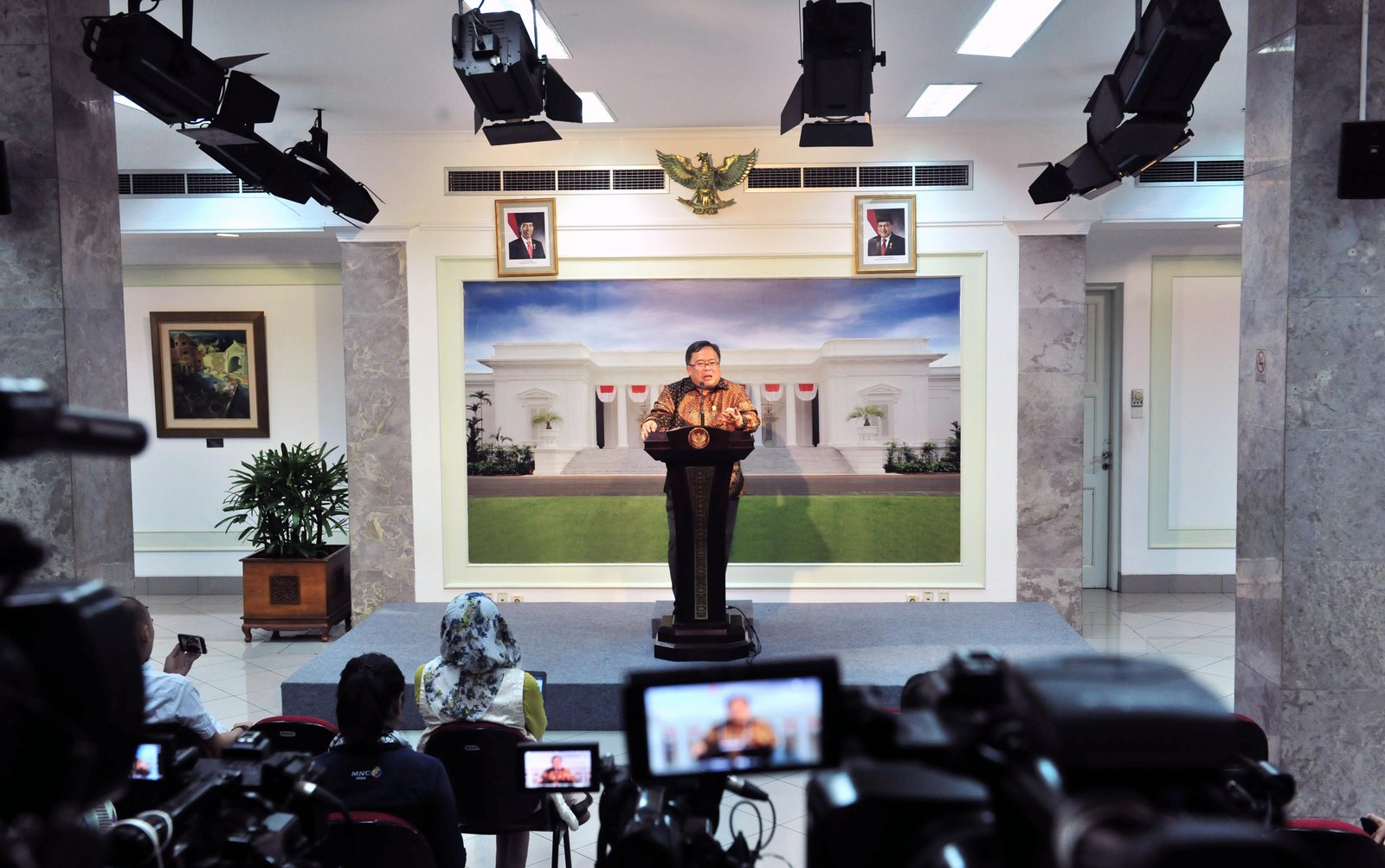 Menteri PPN/Kepala Bappenas Bambang Brodjonegoro menyampaikan keterangan pers usai Rapat Terbatas, di…