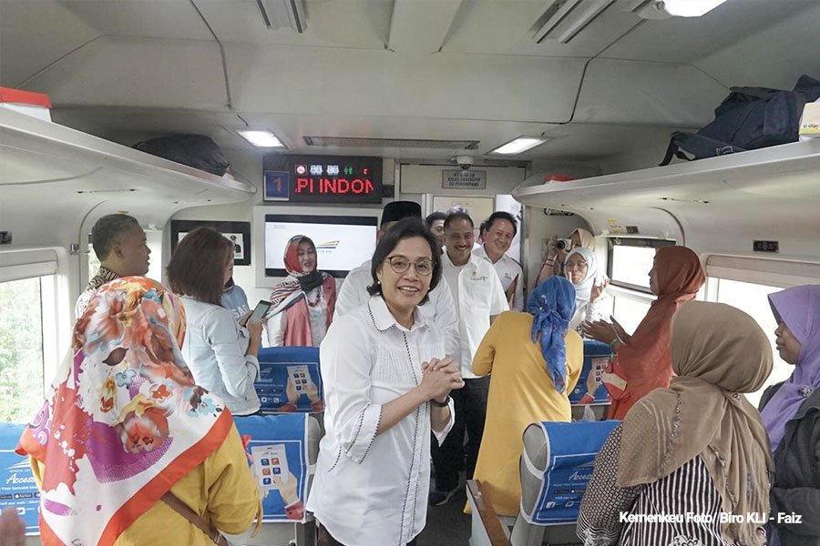Menkeu Sri Mulyani Indrawati naik kereta mengecek pembangunan kembali jalur KA Cibatu…