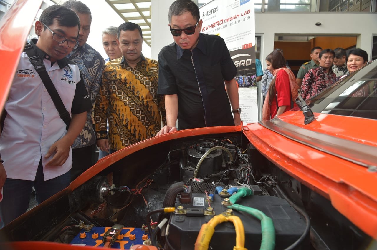 Menteri ESDM Ignasius Jonan melihat spek mobil listrik besutan Institut Teknologi Nasional…