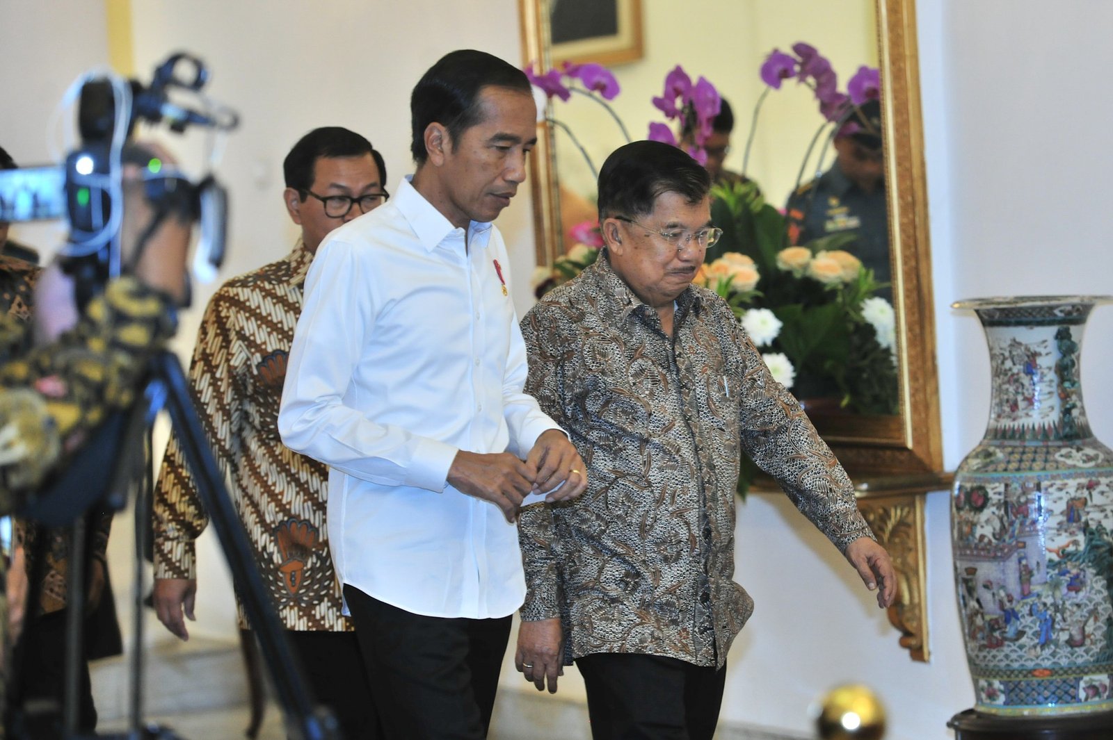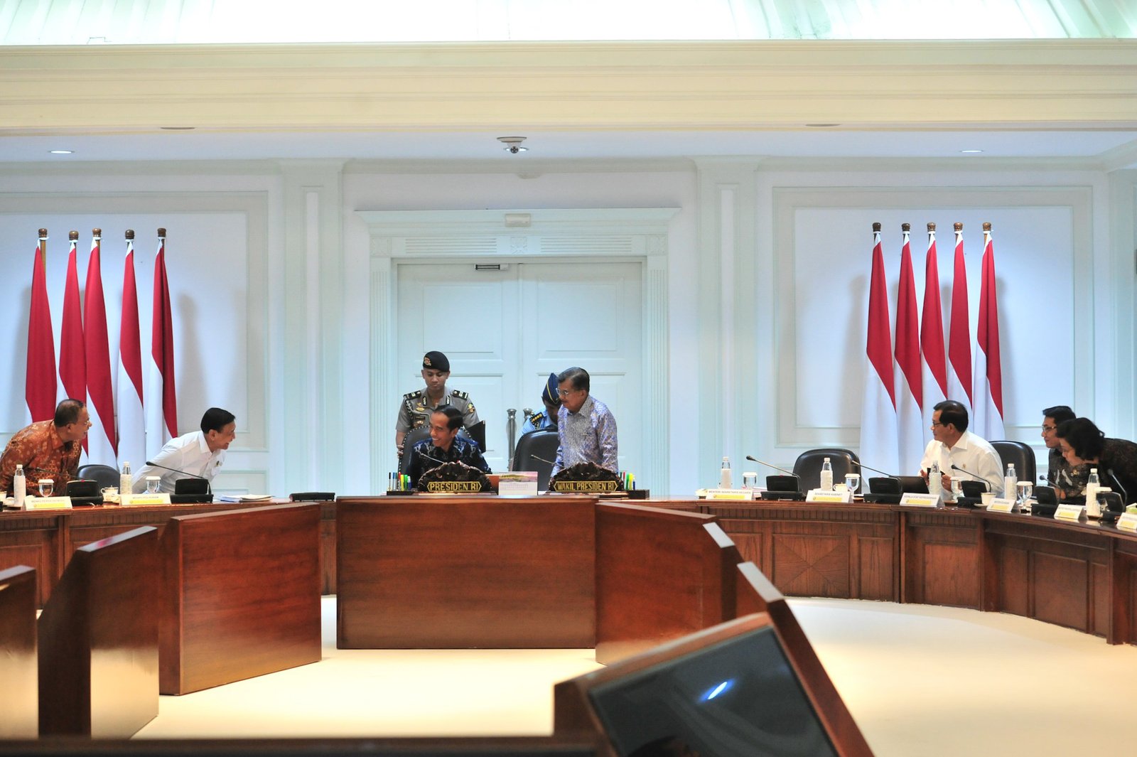 Presiden Jokowi didampingi Wakil Presiden Jusuf Kalla bersiapan memimpin rapat terbatas di…