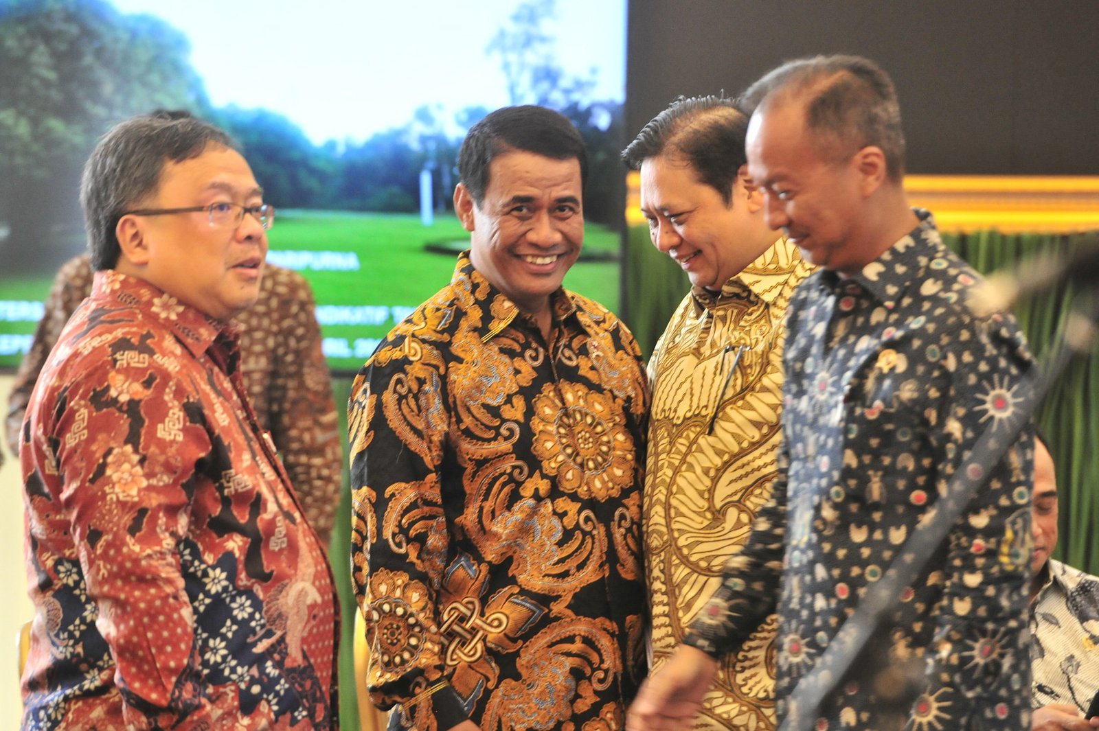 Sejumlah menteri terlibat diskusi kecil sebelum mengikuti Sidang Kabinet Paripurna, di Istana…