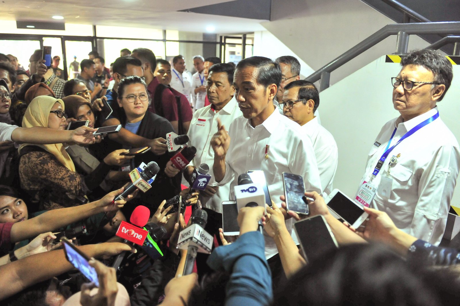 Presiden Jokowi menjawab pertanyaan wartawan di Kompleks Gelora Bung Karno (GBK), Rabu…