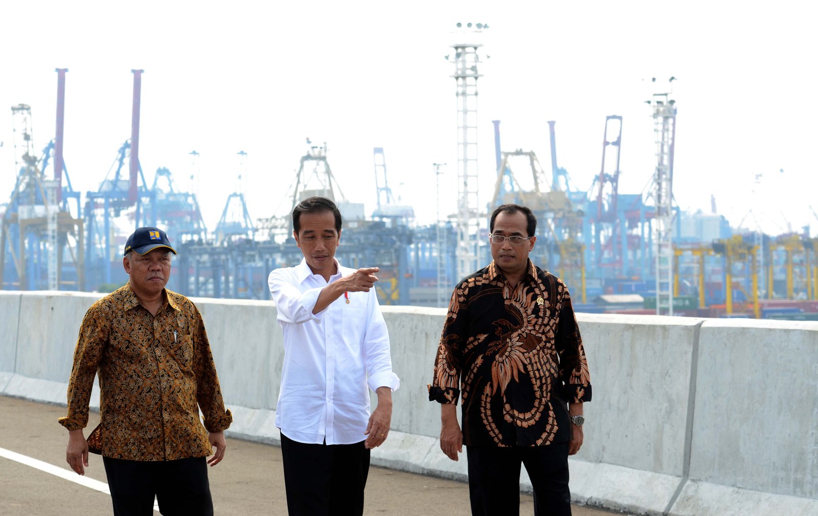 Presiden didampingi Menhub dan Menteri PUPR saat meninjau akses tol menuju pelabuhan.…
