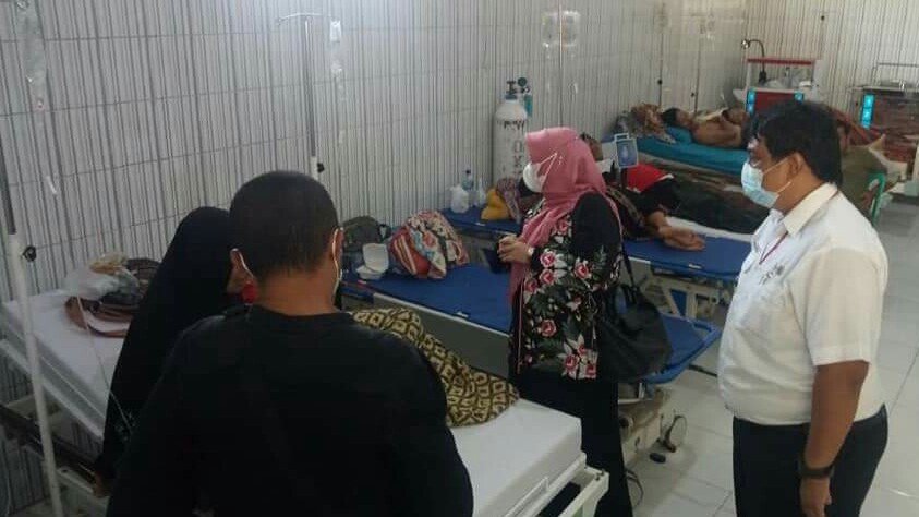 Hj. Kania Ernawati Herdiat melakukan kunjungan terhadap pasien terduga keracunan makanan di…
