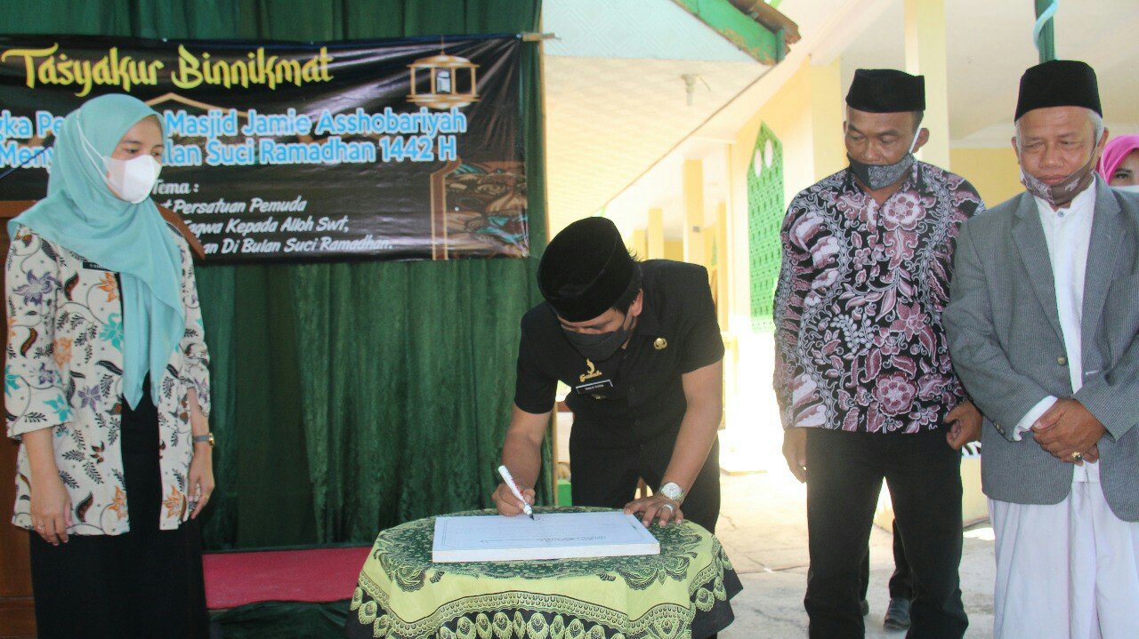 Wakil Bupati Ciamis, Yana D Putra menandatangani prasasti pada acara peresmian Masjid…