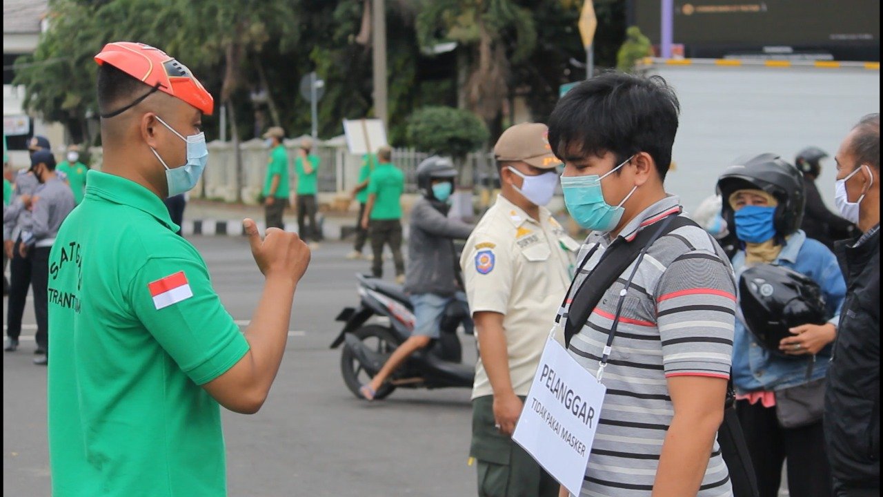 Salah seorang pelanggar yang terjaring operasi Yustisi 3 M sedang mendapatkan arahan…