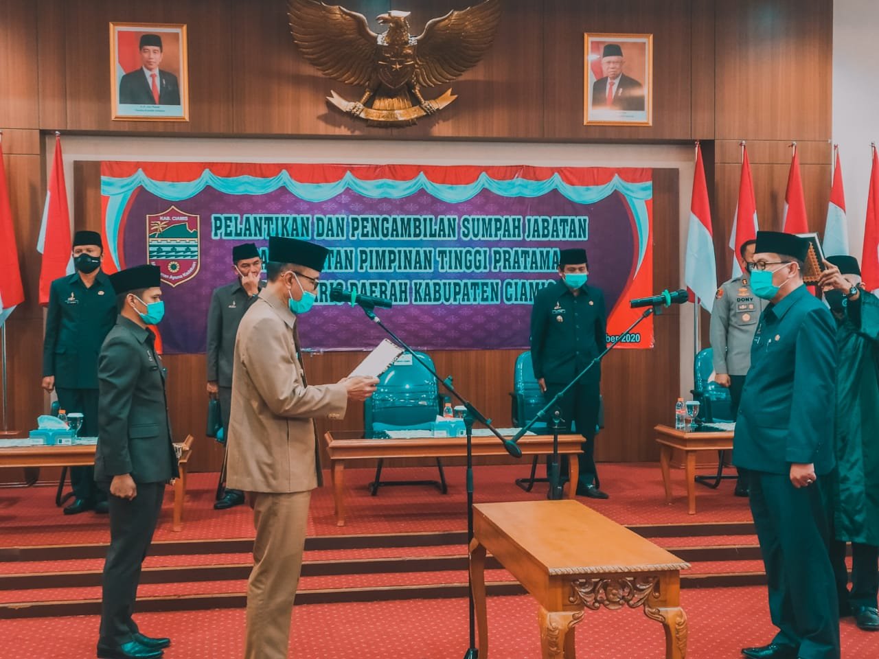 Bupati Ciamis melantik sekaligus mengambil sumpah Dr. H. Tatang, MPd sebagai Sekretaris…
