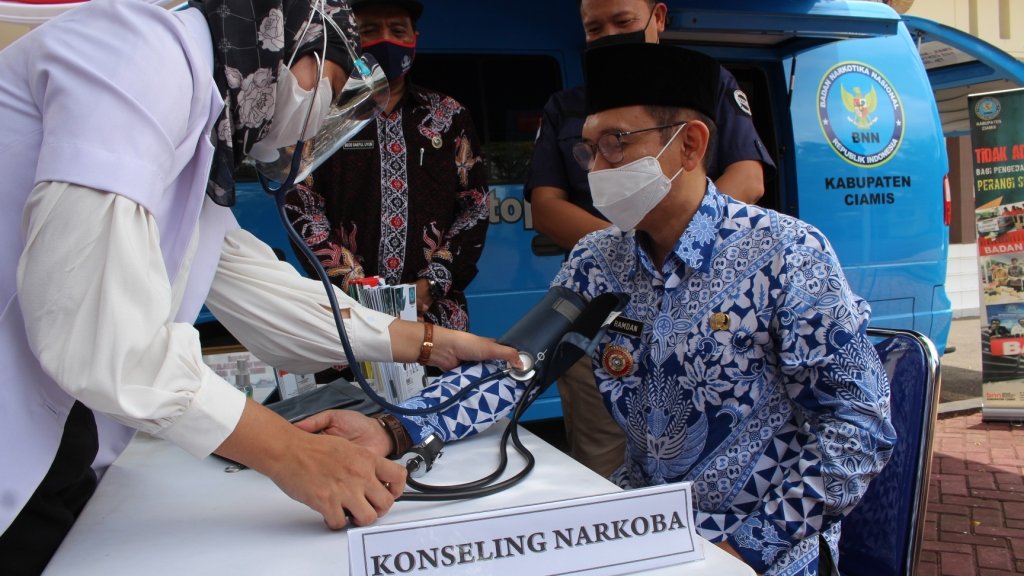 Petugas medis dari BNN Kabupaten Ciamis sedang melakukan pemeriksaan sekaligus konseling Narkoba…