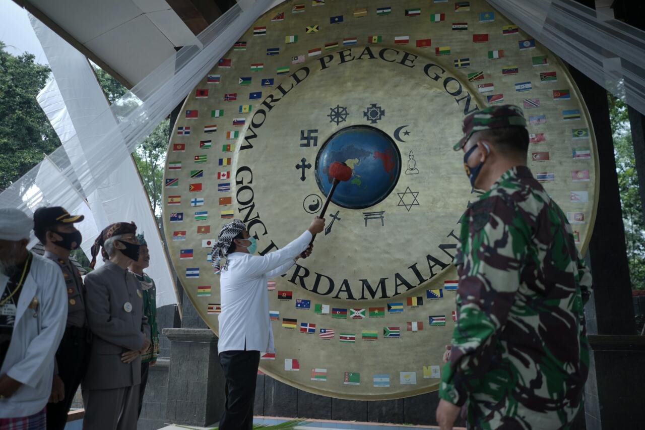 Wakil Bupati Ciamis, Yana D. Putra memukul Gong Perdamaian Dunia pada Acara…
