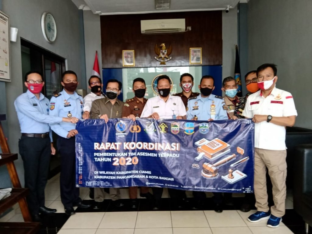 Para peserta Rakor berfoto bersama usai membentuk Tim Asessmen Terpadu Ciamis.- Badan…