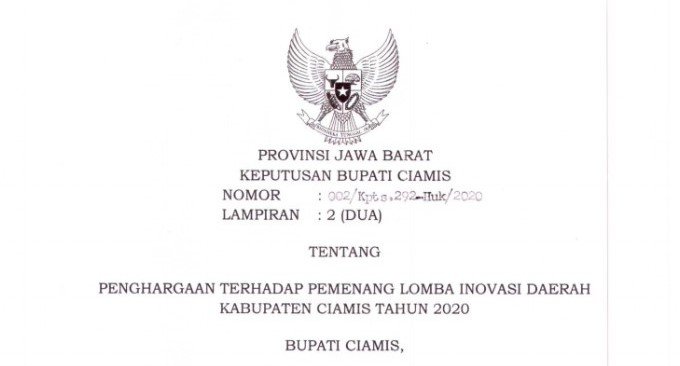 Inilah Para Pemenang Lomba Inovasi Daerah Kabupaten Ciamis Tahun 2020