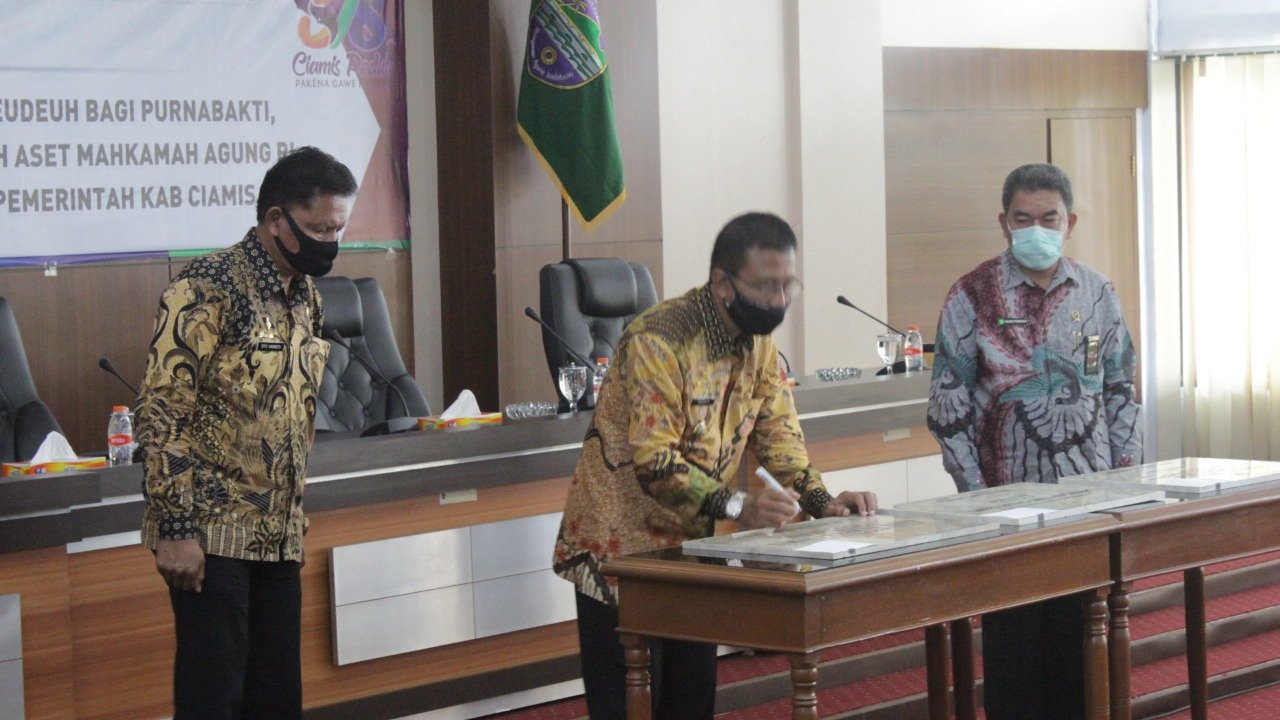 Bupati Ciamis, Herdiat Sunarya menandatangani Prasasti Proyek Pembangunan dalam rangkaian Peringatan Hari…