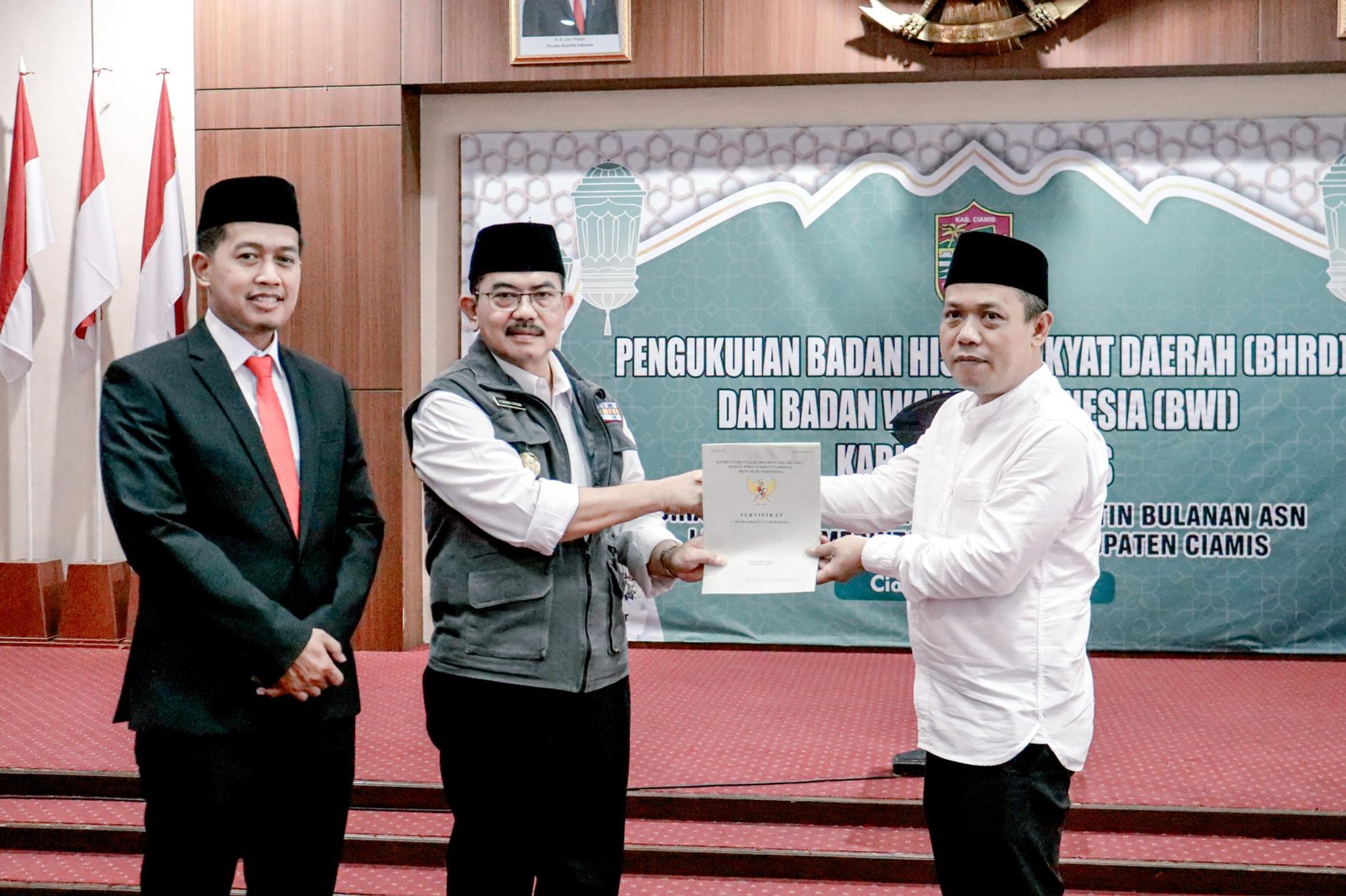 KABUPATEN CIAMIS,- Momentum penting terjadi di Kabupaten Ciamis dengan dikukuhkannya dua lembaga keagamaan, yaitu Badan Hisab Ru’yat Hilal Daerah (BHRD) dan Badan Wakaf Indonesia (BWI).