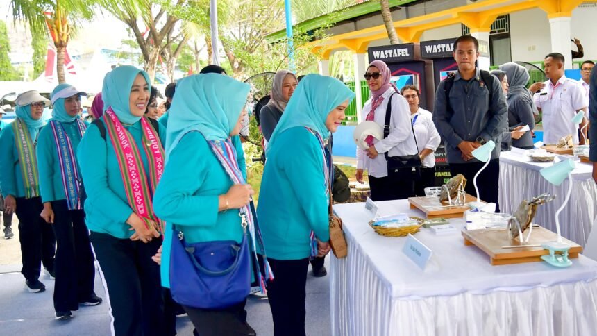 Pada kesempatan tersebut, Ibu Iriana tampak antusias berbincang dengan para pelaku UMKM dengan memberikan dorongan dan motivasi untuk terus berkarya dan memanfaatkan potensi laut Indonesia secara maksimal.