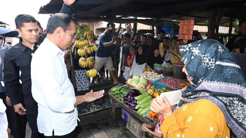 Presiden Joko Widodo mengecek harga di Pasar Pata, Kabupaten Katingan, Provinsi Kalimantan Tengah, pada Rabu, 26 Juni 2024.