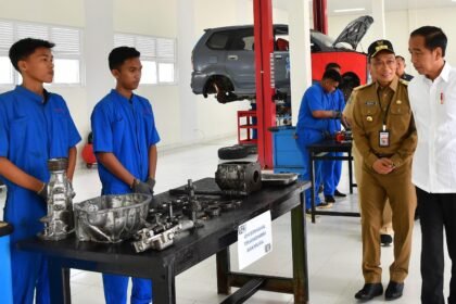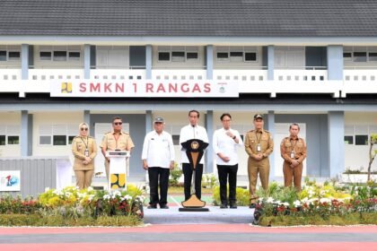 Presiden Joko Widodo meninjau langsung fasilitas pendidikan di SMK Negeri 1 Rangas,…