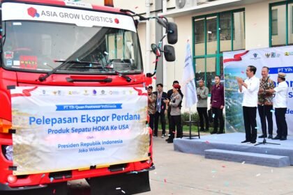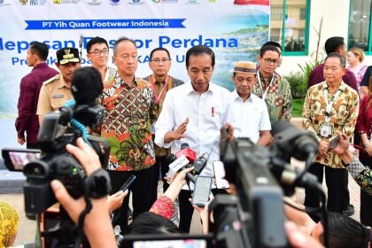 Presiden Joko Widodo secara resmi melepas ekspor perdana 16 ribu pasang sepatu…