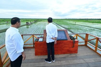 Presiden Jokowi dan Ibu Iriana Tinjau Simulasi Drone Tabur Pupuk di Papua Selatan