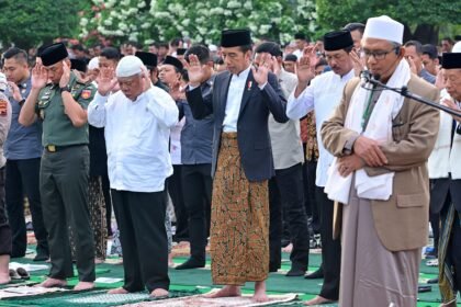 Presiden Joko Widodo beserta Ibu Iriana melaksanakan salat Iduladha di Lapangan Simpang…
